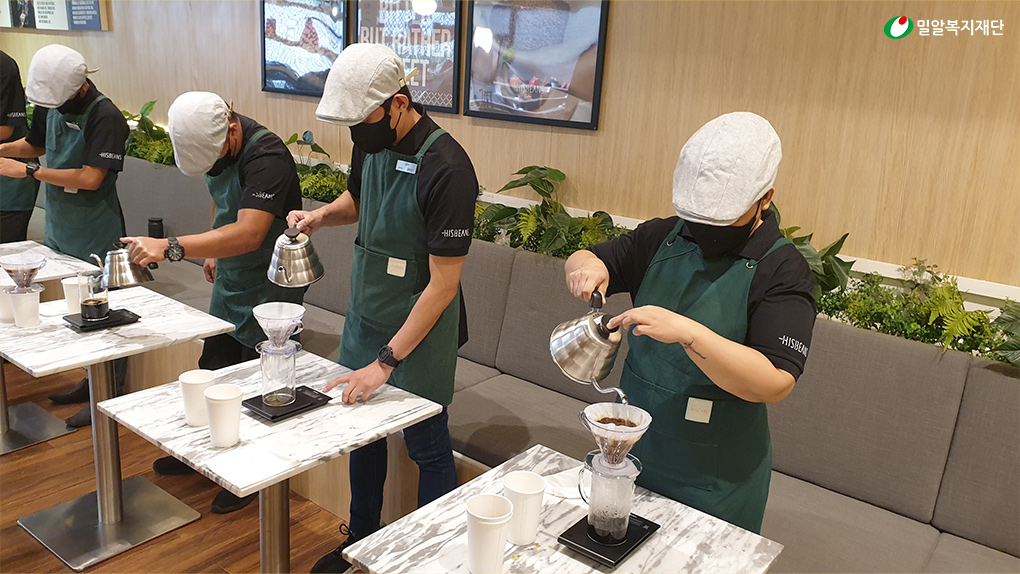 In response, Miral Welfare Foundation, in partnership with People With Fragrance Inc. and the Korea International Cooperation Agency (KOICA), began planning the first HISBEANS cafe in 2019 based on a Civil Society Cooperation Program. After navigating the challenges of the COVID-19 pandemic, HISBEANS Quezon Branch officially opened on July 30, 2021, in Quezon City, Philippines.